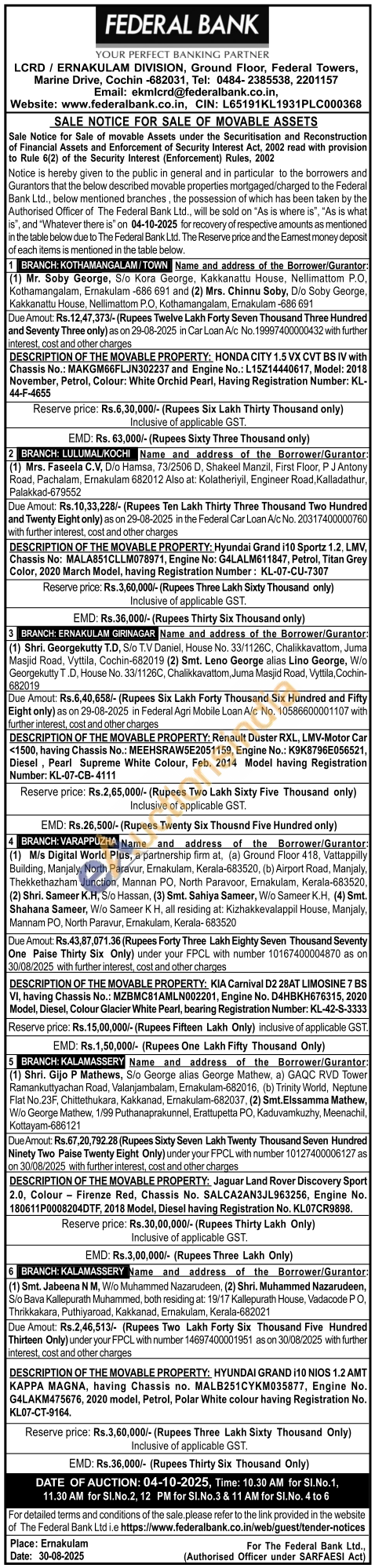 Contact : Tel: 0484-2385538, 2201157