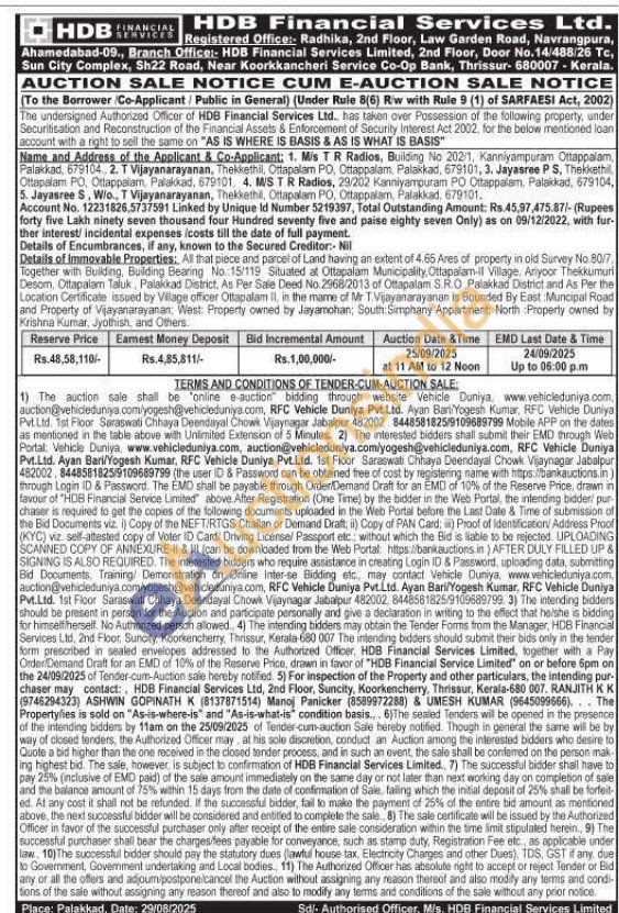 All that piece and parcel of Land having an extent of 4.66 Ares of property in old Survey No 80/7 Together with Building, Building Bearing No. 15/119 Situated at Ottapalam Municipality, Ottapalam-II Village. Anyoor Thekkumuri Desom, Ottapalam Taluk, Palakkad District. As Per Sale Deed No. 2968/2013 of Ottapalam S.RO Palakkad District and As Per the Location Certificate issued by Village officer Ottapalam il, in the mame of Mr T.Vijayanarayanan is Bounded By East: Muncipal Road and Property of Vijayanarayanan: West: Property owned by Jayamohan, South: Simphany Appartment: North Property owned by Krishna Kumar, Jyothish, and Others.