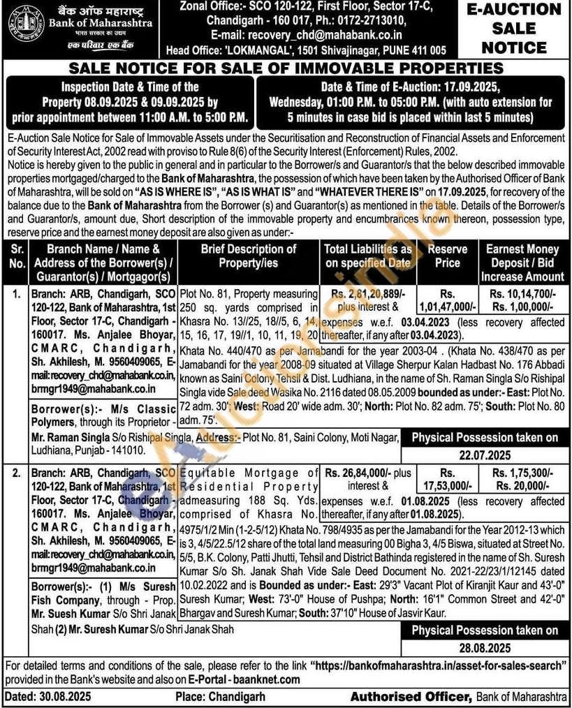 Plot No. 81, Property measuring 250 sq. yards comprised in - Khasra No. 13//25, 18//5, 6, 14, , 15, 16, 17, 19//1, 10, 11, 19,20 Khata No. 440/470 as per Jamabandi for the year 2003-04. (Khata No. 438/470 as per Jamabandi for the year 2008-09 situated at Village Sherpur Kalan Hadbast No. 176 Abbadi known as Saini Colony Tehsil & Dist. Ludhiana, in the name of Sh. Raman Singla S/o Rishipal Singla vide Sale deed Wasika No. 2116 dated 08.05.2009
