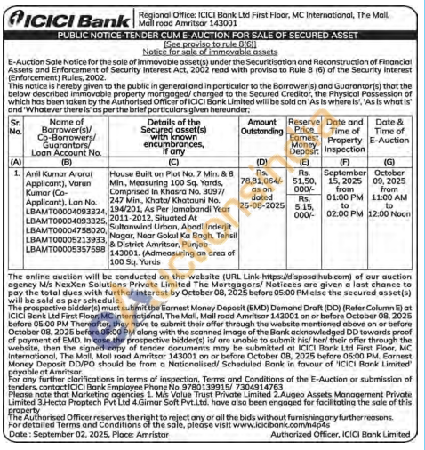 House Built on Plot No. 7 Min. & 8 Min, Measuring 100 Sq. Yards, Comprised In Khasra No. 3097/247 Min Khata/Khatauni No. 194/201, As Per Jamabandi Year 2011-2012, Situated At Sultonwind Urban, Abad! Inderjit Nagar, Near Gokul Ka Bagh, Tehsil & District Amritsar, Punjab-143001. (Admeasuring an area of 100 Sq. Yards
