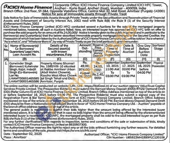 Property Khana Shumari No. 1580/VIII-10 situated at Rakba Amritsar Urban (Abdi Mohni Chownk), Koocha Mast Khoo Chowk Jal Singh Tehsil and Distt. Amritsar, Punjab