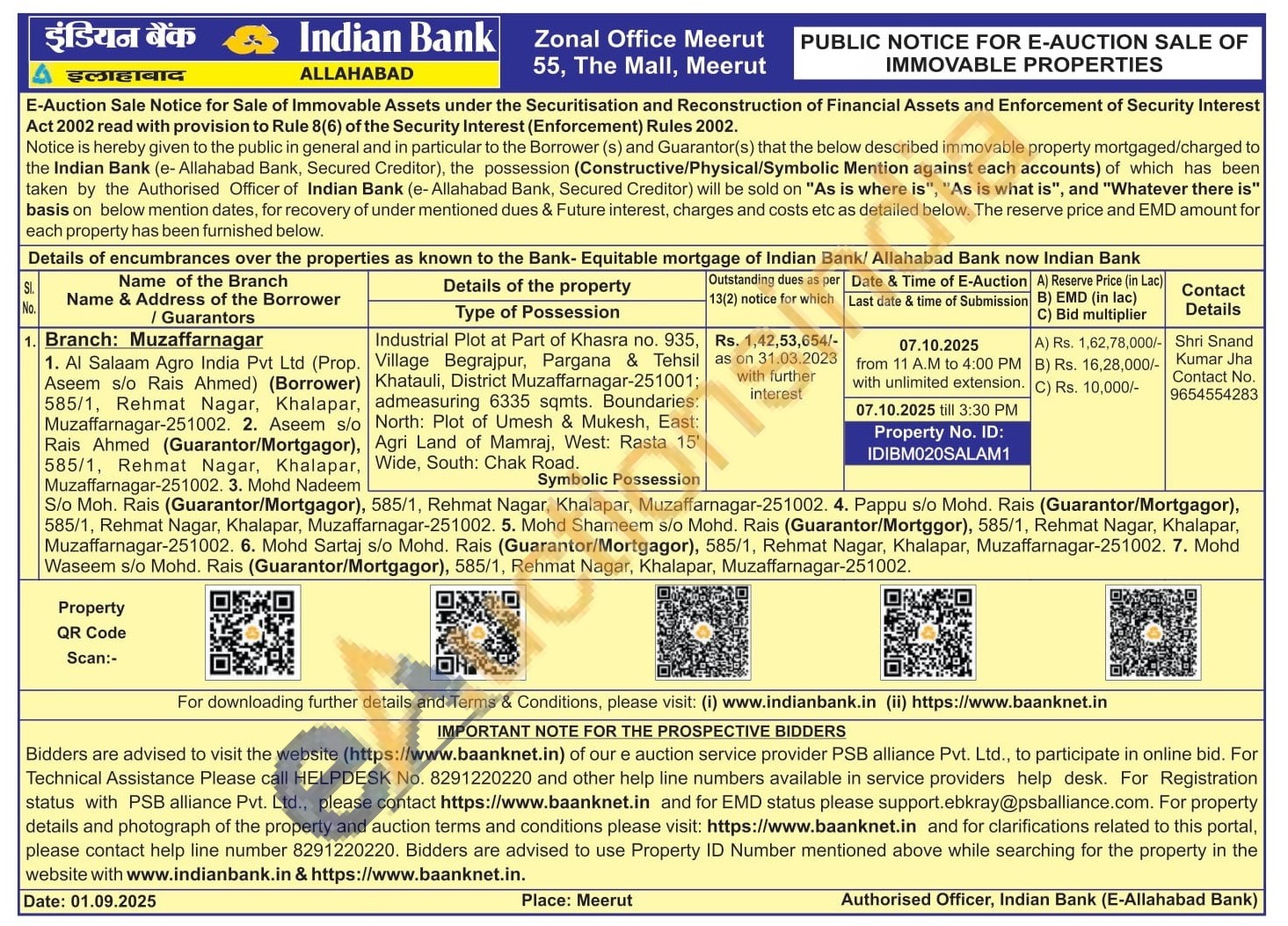 Industrial Plot at Part of Khasra no. 935, Village Begrajpur, Pargana & Tehsil Khatauli, District Muzaffarnagar-251001; admeasuring 6335 sqmts. Boundaries: North: Plot of Umesh & Mukesh, East: Agri Land of Mamraj, West: Rasta 15' Wide, South: Chak Road.