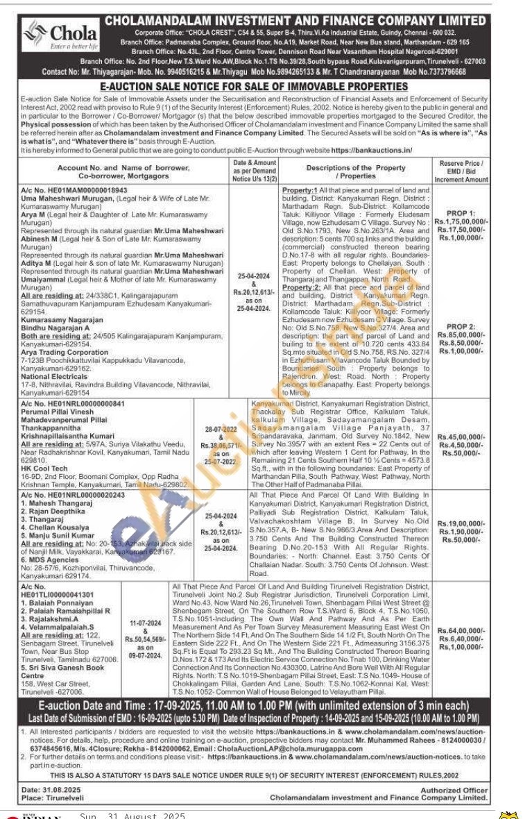 Property:2: All that piece and parcel of land and building, District Kanyakumari Regn. District: Marthadam, Regn Sub-District Kollamcode Taluk: Killiyoor Village: Formerly Ezhudesam now Ezhudesam C Village. Survey No: Old S. No.758. New S.No. 327/4. Area and description: the part and parcel of Land and builing to the extent of 10.720 cents 433.84 Sq.mte situated in Old S.No. 758, RS.No. 327/4 in Ezhuthesam Vilavancode Taluk Bounded by Boundaries: South Property belongs to Rajendren. West Road. North Property belongs to Ganapathy. East: Property belongs to Mircily