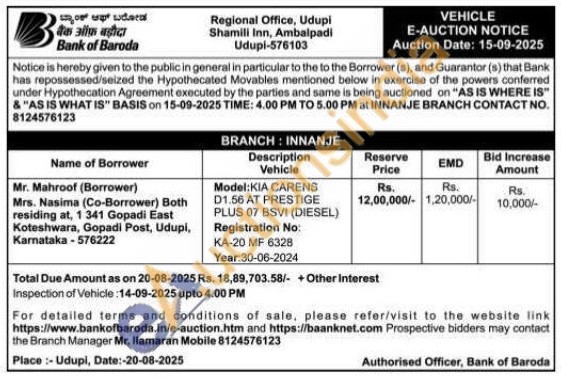 Model: KIA CARENS D1.56 AT PRESTIGE PLUS 07 BSVI (DIESEL) - Registration No: KA-20 MF 6328 Year:30-06-2024