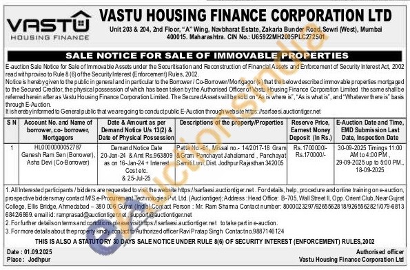 Patta No.-61, Missal no- 14/2017-18 Gram & Gram Panchayat Jahalamand, Panchayat Samiti Luni, Dist. Jodhpur Rajasthan 342005