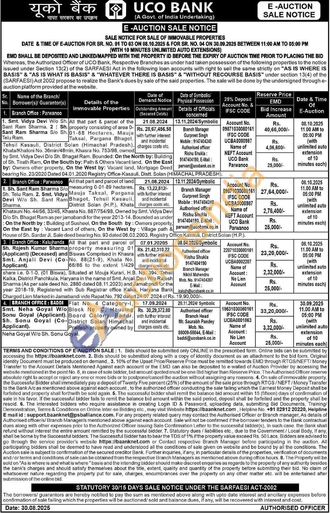 All that part & parcel of the property consisting of area 0- 01-68 Hectares, Mauja Tehsil Kasauli, District Solan (Himachal Pradesh). charges costs etc. Taksal, Pargana Bhaget, Khata/Khatoni No. 36min/48min, Khasra No. 753/98, owned by Smt. Vidya Devi Dio Sh. Bhagat Ram. Bounded: On the North by: Building of Sh. Tirath Ram, On the South by: Path & Others Vacant land, On the East by: Owners other property. On the West by: Vacant land, Mortgage Deed