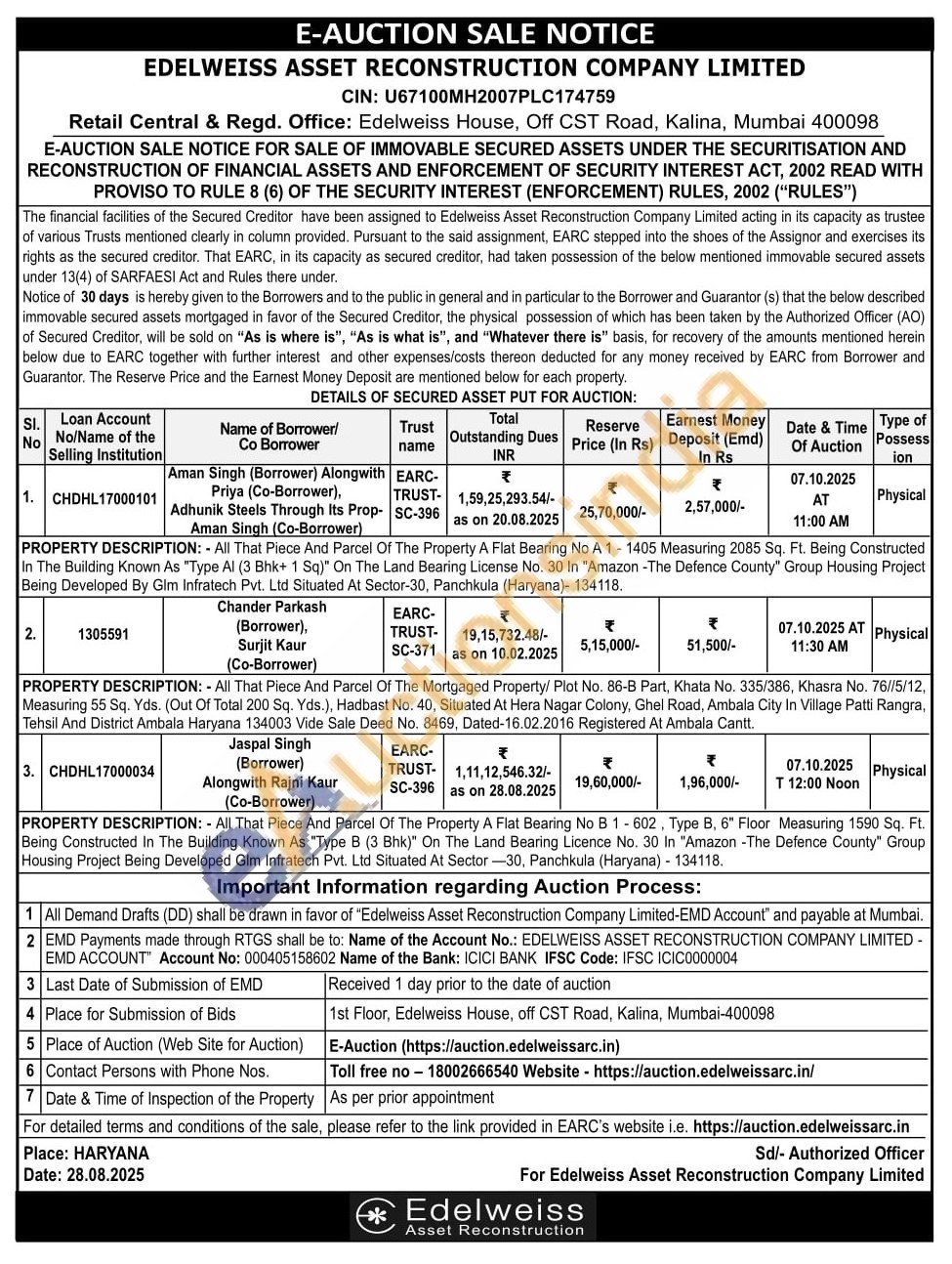 2)All That Piece And Parcel Of The Mortgaged Property/ Plot No. 86-B Part, Khata No. 335/386, Khasra No. 76//5/12, Measuring 55 Sq. Yds. (Out Of Total 200 Sq. Yds.), Hadbast No. 40, Situated At Hera Nagar Colony, Ghel Road, Ambala City In Village Patti Rangra, Tehsil And District Ambala Haryana 134003 Vide Sale Deed No. 8469, Dated-16.02.2016 Registered At Ambala Cantt.