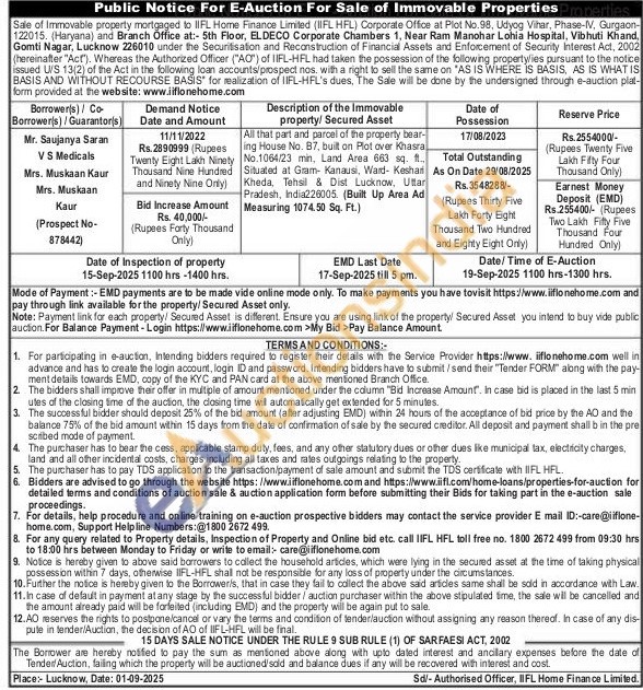 All that part and parcel of the property bear-ing House No. 87, built on Plot over Khasra No.1064/23 min, Land Area 663 sq. ft. Situated at Gram- Kanausi, Ward- Keshari Kheda, Tehsil & Dist Lucknow, Uttar Pradesh, India226005. (Built Up Area Ad Measuring 1074.50 Sq. Ft.)