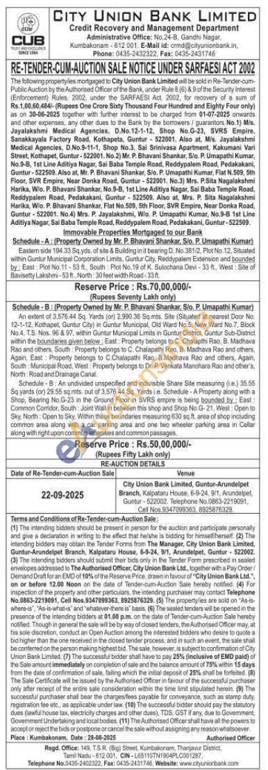 An extent of 3.576.44 Sq. Yards (or) 2.990.36 50 mts. Site (Situated at nearest Door No 12-1-12, Kothapet, Guntur City) in Guntur Municipal, Old Ward No 5, New Ward No. 7. Block No.4, TS. Nos. 96 & 97, within Guntur Municipal Limits in Guntur District, Guntur Sub-District within the boundaries given below, East Property belongs to C. Chalapthi Rao, B. Madhavs Ras and others. South Property belongs to C. Chalapathi Rao, B. Madhava Rao and others. Again, East Property belongs to C. Chalapathi Rao, B.Madhava Rao and others. Agan, South Municipal Road West Property belongs to Dr. P. Venkata Manohara Rao and other's, North: Road and Drainage Caral