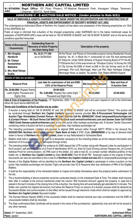 All the Parcel and Pieces of immovable property having Residential House bearing No. 81, in Block No.11 constructed on over the land admesured 27-53sq, mtr. Under OIGS Scheme of Gujarat Housing Board of F.P. No.28, T.P.Scheme No.2 of the area known as Khodiyar Colony of Survey No. 105 of City Survey No.5306 of sheet no.306 in the city Survey ward no.15 of Jamnagar, Plot no.8, Maninagar, Near Lati Plot, Near Haribapa Collage, Maninagar Road, at Jasdon, Tal Jasdon, Dist: Rajkot-360050-Gujarat