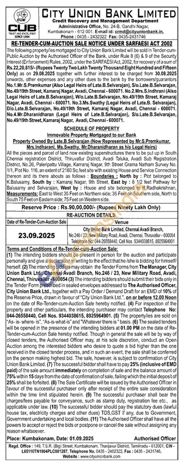 All the pieces and parcel of land now existing superstructures there to be put up in South Chennai registration District, Thiruvallur District, Avadi Taluka, Avadi Sub Registration District, No.26, Paleripattu Village, Kamaraj Nagar, 9th Street Grama Natham Survey No. 1/1, Plot No. 116, an extent of 2180 Sq. feet site with existing House and Service Connection thereon and its there abouts as follows: Boundaries: North by Plot belonged to K.Balusamy, South by: Kamaraj Nagar, 9th Street, East by: 8 1/2 feet Pathway for Balusamy and Selvarajan, West by: House and site belonged to R.Radhakrishnan, Measurements: East to West 35 Feet on Northern side; 35 Feet on Southern side, North to South 75 Feet on Eastern side; 75 Feet on Western side