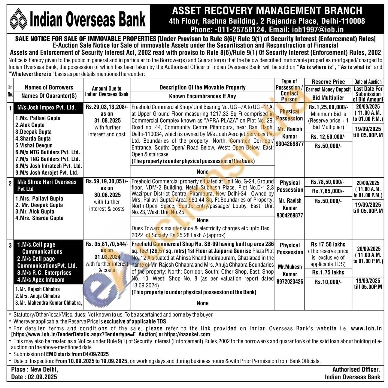 Freehold Commercial Shop No. SB-09 having built up area 286 sq. feet (26.57 sq. mtrs) 1st Floor at Jaipuria Sunrise Plaza Plot No. 12 A situated at Ahinsa Khand Indirapuram, Ghaziabad in the name of Mr. Rajesh Chhabra and Mrs. Anuja Chhabra Boundaries of the property: North: Corridor, South: Other Shop, East: Shop No. 10, West: Shop No. 8 (as per valuation report dated 13.09.2024