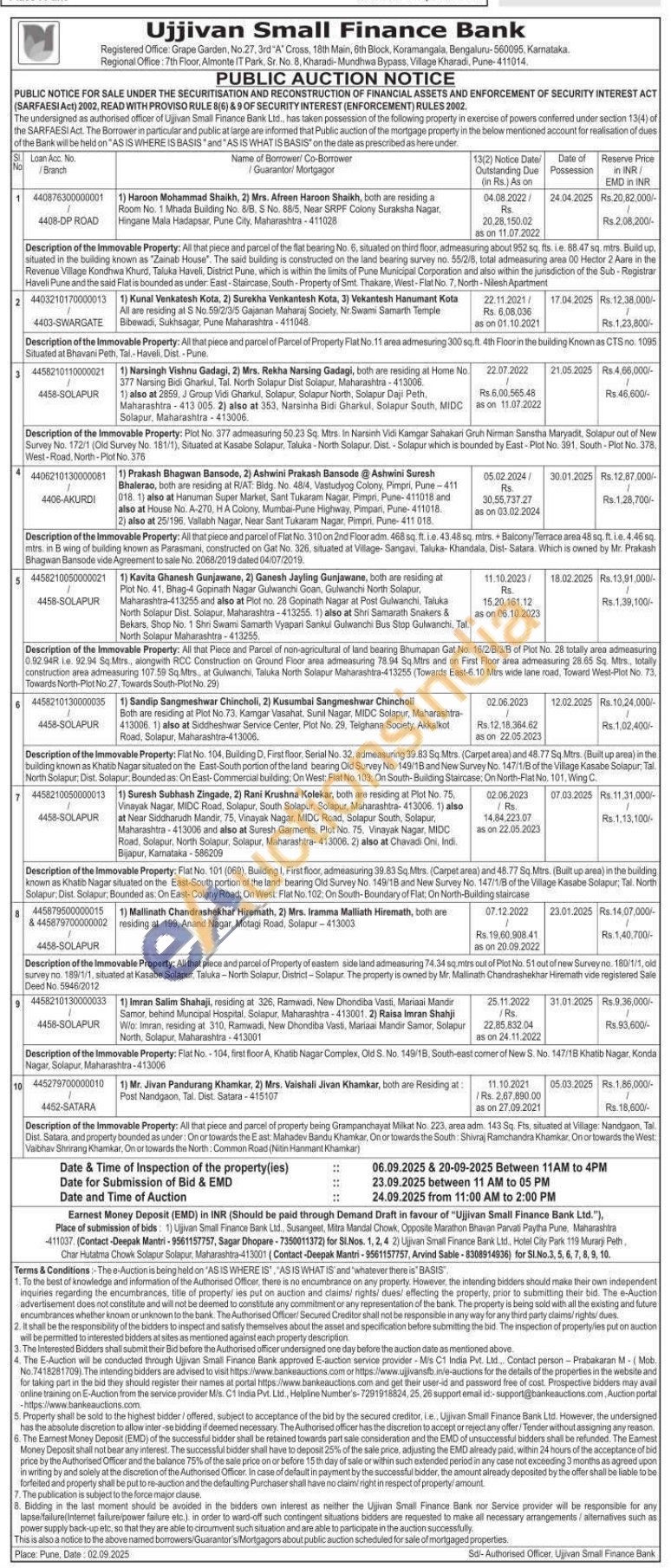Description of the Immovable Property: All that piece and parcel of Property of eastern side land admeasuring 74.34 sq.mtrs out of Plot No. 51 out of new Survey no. 180/1/1, old survey no. 189/1/1, situated at Kasabe Solapur, Taluka -North Solapur, District-Solapur. The property is owned by Mr. Mallinath Chandrashekhar Hiremath vide registered Sale Deed No. 5946/2012