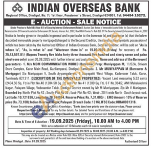 Vacant Land 1.02 1404.30 41204.50 5.41 (1200 S 3042 AM M Bager, Palya Village, TricyMM MV Mar Bounded by: North-4432 Latitude: 10.121830, Longitude: 78144004 Pric. 7,31,000): EMO Amount 10% of Reser prices 73,100 Indian Beers Bank, Palayam Branch Code 1316 IFSC Code: 85001216