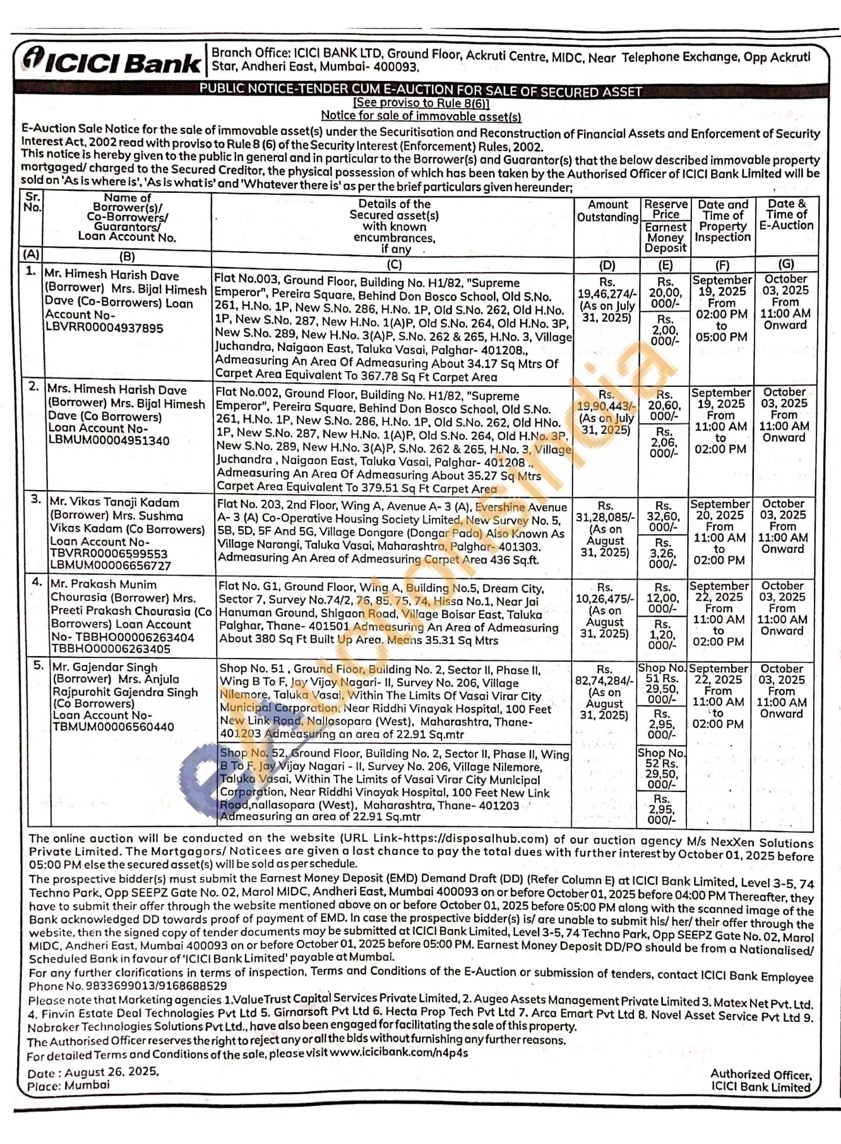 Shop No. 52, Ground Floor, Building No. 2, Sector II, Phase II, Wing B To F, Jay Vijay Nagari - II, Survey No. 206, Village Nilemore, Taluka Vasai, Within The Limits of Vasai Virar City Municipal Corporation, Near Riddhi Vinayak Hospital, 100 Feet New Link Road, nallasopara (West), Maharashtra, Thane-401203 Admeasuring an area of 22.91 Sq.mtr