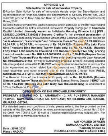 PROPERTY BEARING NO. 8, AMARNATH 2, NR. PUNESWAR MAHADEV TEMPLE, KAPADWANJ ROAD, NR. SRP CAMP, NR. BILODRA JAIL, NADIAD, GUJARAT-387001.