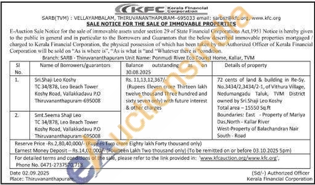 72 cents of land & building in Re-Sy. No.3434/2,3434/2-1, of Vithura Village, Nedumangadu Taluk, TVM District owned by Sri.Shaji Leo Koshy Total area-15550 Sq.ft Boundaries: East Property of Mariya Das, North-Kallar River West-Property of Balachandran Nair South Road