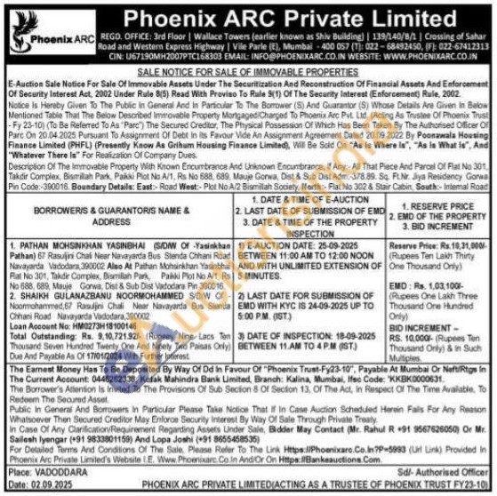 All Tisat Piece And Parcel Of Flat No 301, Takdir Complex, Bismillah Park, Paikiki Plot No A/T, Rs. No 688, 689, Mauje Gorwa, Dist & Sub Dist Adm-378.89 Sq. FLNr. Jiya Residency Gorwa Pin Code:-380016. Boundary Details: East: Road West:-Plot No A2 Bismillah Society, North: Flat No 302 & Stair Cabin South Intemal Road