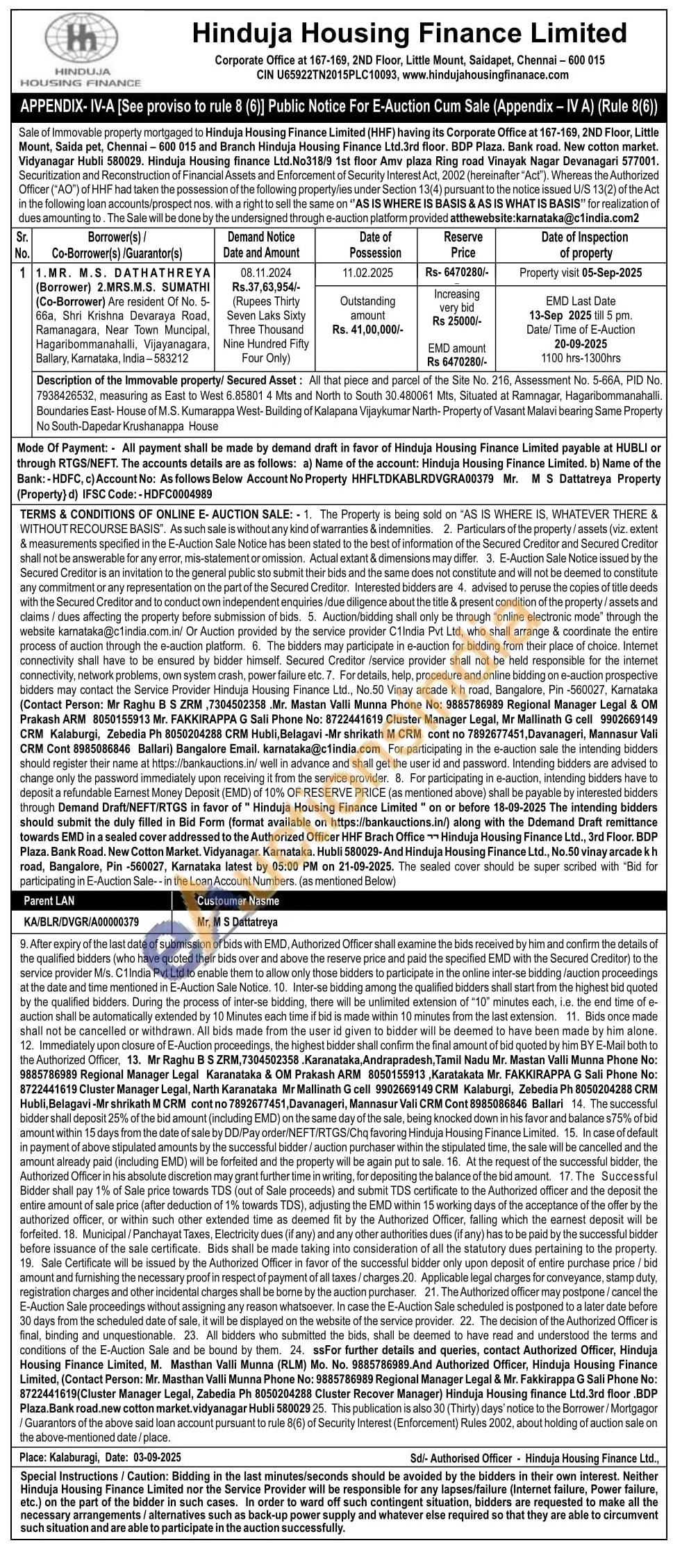 All mat piece and parcel of the Site No. 216. Aasesment No. 5-66A, PID No. 7938426532, measuring as East to West 5.5801 & Ms and North to South 20.480081 Mts, Situated at Ramnagar, Hagaribommanahall. Boundaries East- House of M.S. Kumarappa West-Building of Katanana vijayiumar Narth-Properly of Vasant Mansi bearng Same Property No South-Dapedar Krushanappa House