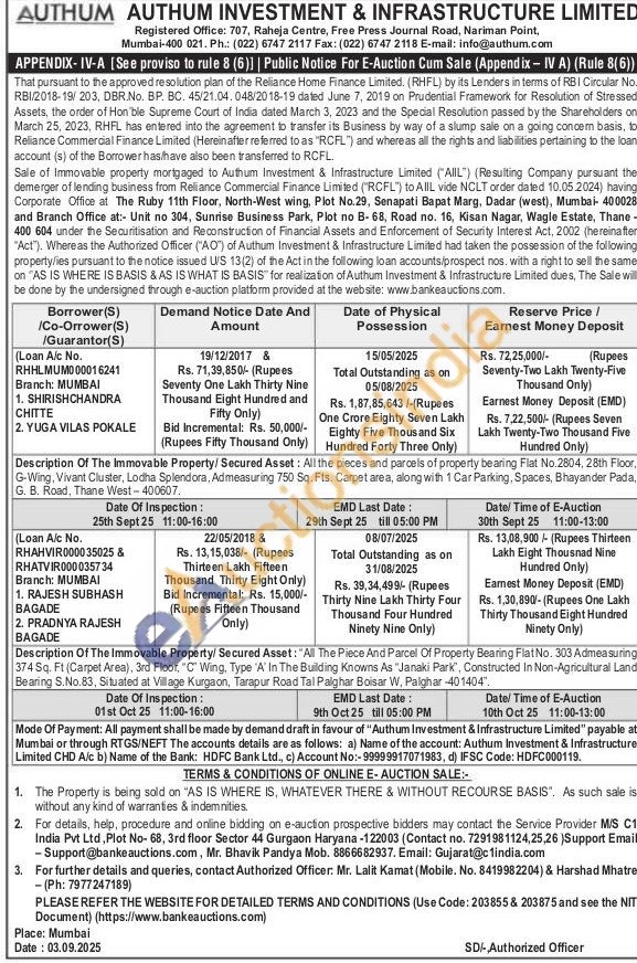 All the pieces and parcels of property bearing Flat No.2804, 28th Floor, G-Wing, Vivant Cluster, Lodha Splendora, Admeasuring 750 Sq. Fts. Carpet area, along with 1 Car Parking, Spaces, Bhayander Pada, G. B. Road, Thane West-400607.