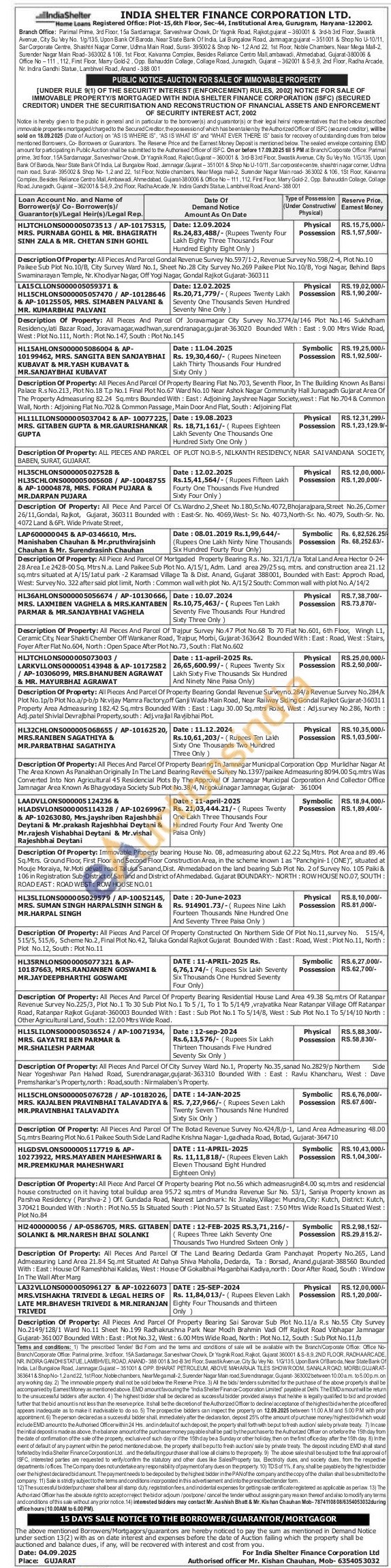 Contact Authorised officer Mr. Kishan Chauhan, Mob-6354053032