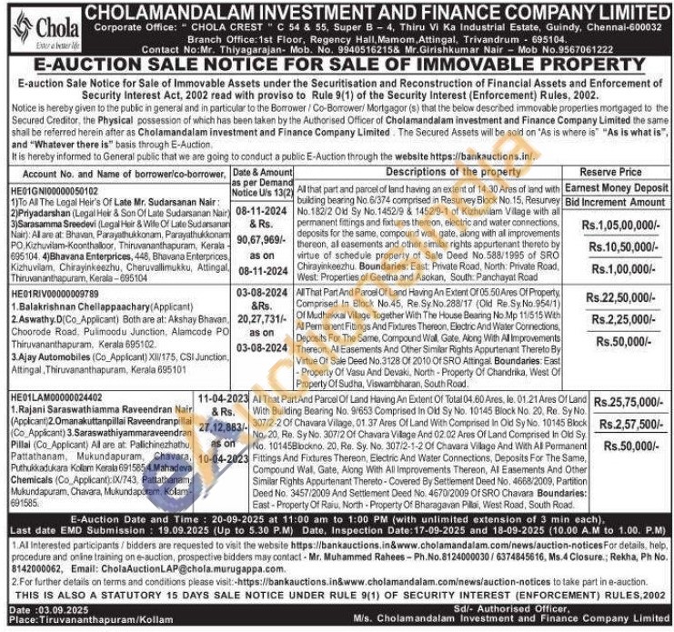 All That Part And Parcel Of Land Having An Extent Of 05.50 Ares Of Property Comprised In Block No.45, Re. Sy No.288/17 (Old Re.Sy. No.954/1) Of Mudhakkal Village Together With The House Bearing No. Mp 11/515 With All Permanent Fittings And Fixtures Thereon, Electric And Water Connections, Deposits For The Same, Compound Wall, Gate, Along With All Improvements Thereon, All Easements And Other Similar Rights Appurtenant Thereto By Virtue Of Sale Deed No.3128 Of 2010 Of SRO Attingal. Boundaries: East Property Of Vasu And Devaki, North-Property Of Chandrika, West Of Property Of Sudha, Viswambharan, South Road