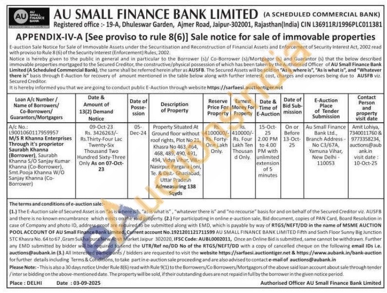 Contact Amit Lohiya, 7340011760& 9773358234, auctions@aub ank.in