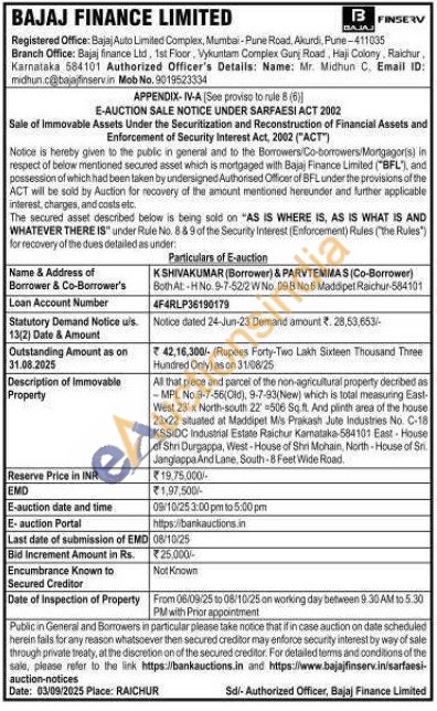 All that piece and parcel of the non-agricultural property decribed as -MPL No.9-7-56(Old), 9-7-93(New) which is total measuring East-West 23 x North-south 22 =506 Soft. And plinth area of the house 23x22 situated at Maddipet M/s Prakash Jute Industries No. C-18 KSSIDC Industrial Estate Raichur Karnataka 584101 East-House of Shri Durgappa, West-House of Shri Mohain, North-House of Sri Janglappa And Lane, South-8 Feet Wide Road