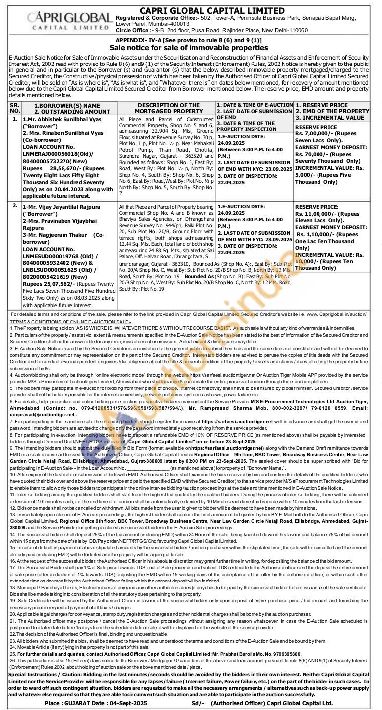 Authorised Officer Capri Global Capital Limited: Mr. Prabhat Barolia Mobile No : 9799395860
