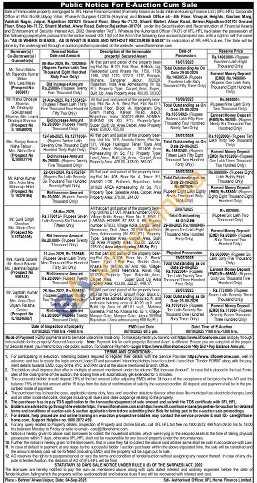 All that part and parcel of the property bear-Ing. Unit No. 1311, Ananda Green, Plot No. 131. Village Husingpur Tehsil Tijara And Distt. Alwar, Rajasthan 301405 Area Admeasuring (In Sq. Ft.). Property Type: Land Area, Built Up Area, Carpet Area Property Area: 478.00, 478.00 362.00