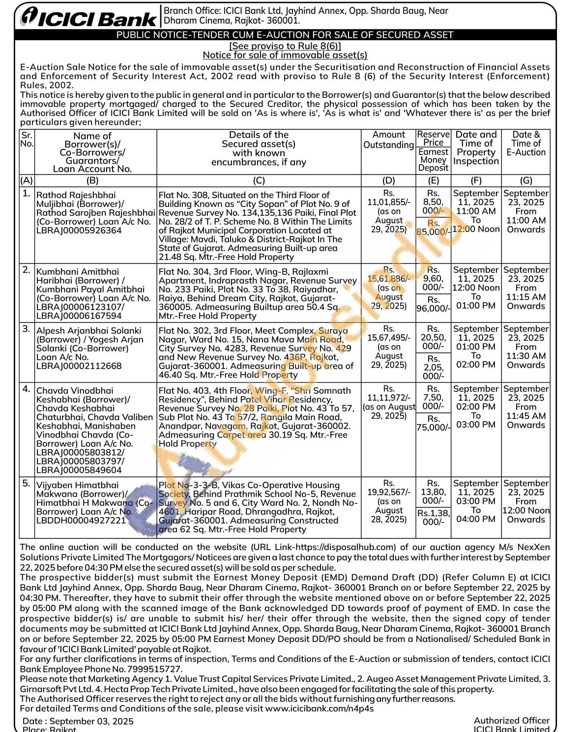 Plot No-3-3-B, Vikas Co-Operative Housing Society, Behind Prathmik School No-5, Revenue Survey No. 5 and 6, City Ward No. 2, Nondh No- 4601, Haripar Road, Dhrangadhra, Rajkot, Gujarat-360001. Admeasuring Constructed area 62 Sq. Mtr.-Free Hold Property