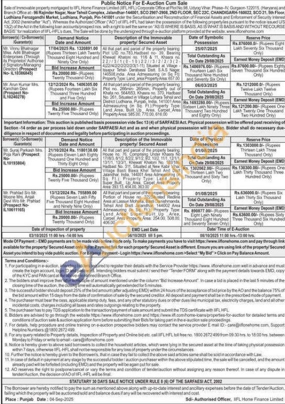 All that part and parcel of the property bearing Plot no. 266min 265min, Property out of Khala no. 564653, Кавга по 370. Habant No 261, Situated in Village Lohara Tehsil and District Ludhiana Punjab, India, 141001 Area Admeasuring (in Sq. Ft): Property Type: Land Area Built Up Area Carpet Ares Property Area: 585.00.770.00.616.00