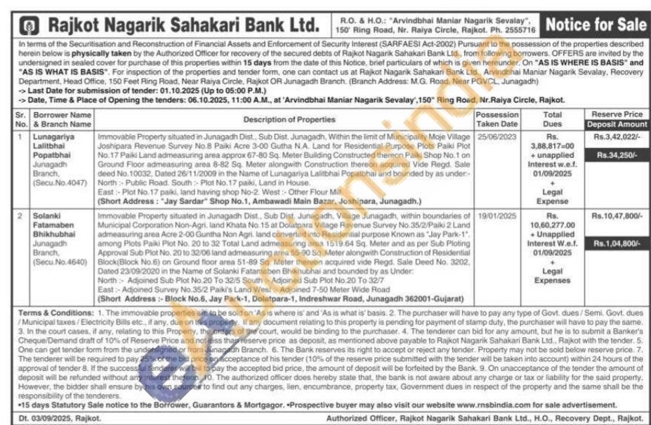 Immovable Property situated in Junagadh Dist., Sub Dist. Junagadh, Within the limit of Municipality Moje Village Joshipara Revenue Survey No.8 Paiki Acre 3-00 Gutha N.A. Land for Residential Purpose Plots Paiki Plot No.17 Paiki Land admeasuring area approx 67-80 Sq. Meter Building Constructed thereon Paiki Shop No.1 on Ground Floor admeasuring area 8-82 Sq. Meter alongwith Construction thereon acquired Vide Regd. Sale deed No. 10032, Dated 26/11/2009 in the Name of Lunagariya Lalitbhai Popalbhai