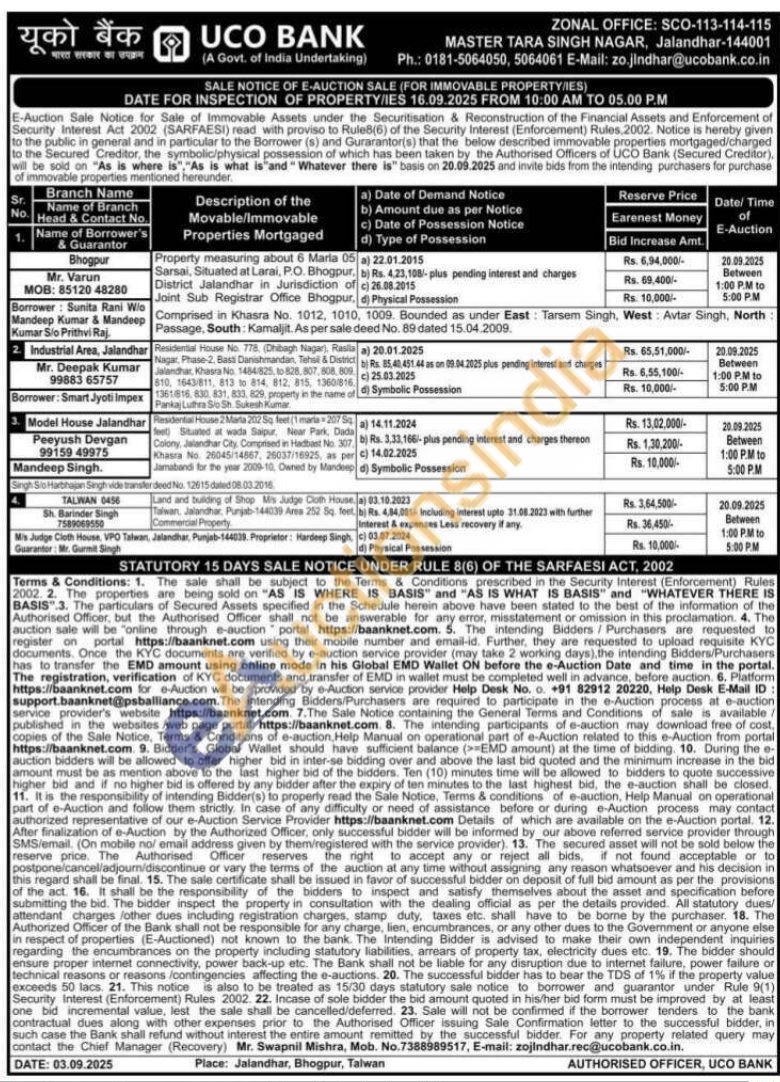 Residential House 2 Marta 202 Sq feet (1 marta 207 S fert Situated at woda Saipur, Near Park, Dada Colony, Jalandhar City, Comprised in Hadbant No. 307. Khasra No. 28045/14867, 26037/16925, as per Jamabandi for the year 2000-10. Owned by Mandeep