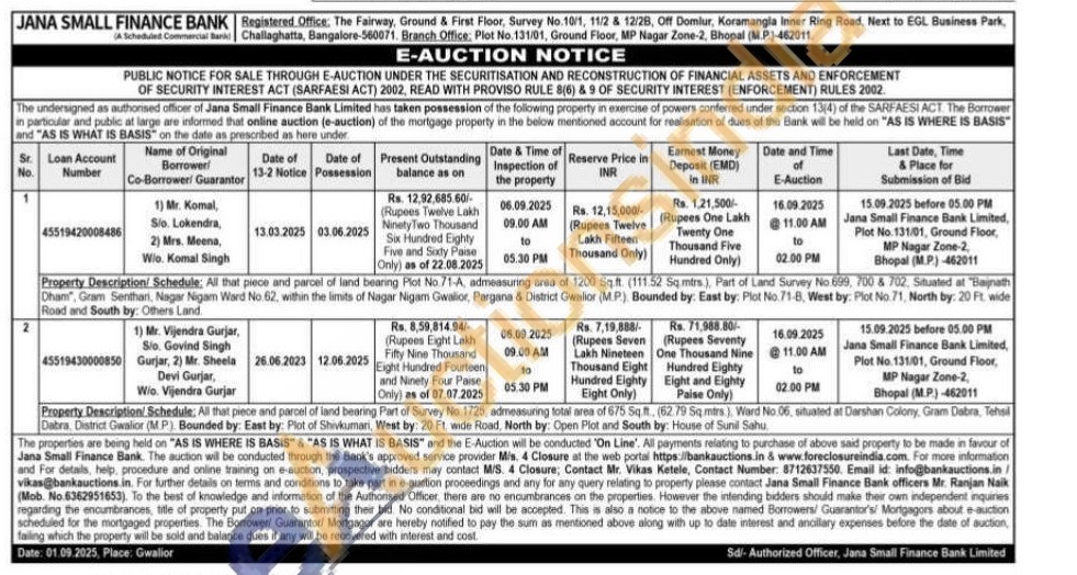 Property Description/ Schedule: All that piece and parcel of land bearing Plot No 71-A, admeasuring area of 1200 Sq.ft. (111.52 Sq mtrs), Part of Land Survey No 699, 700 & 702, Situated at "Baijnath Dham", Gram Senthari, Nagar Nigam Ward No. 62, within the limits of Nagar Nigam Gwalior, Pargana & District Gwalior (MP) Bounded by: East by: Plot No. 71-B, West by: Plot No 71, North by: 20 Ft, wide Road and South by: Others Land