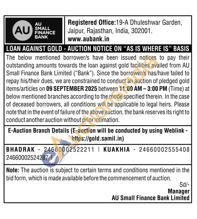 AU Small Finance Bank Gold Auctions Auction in Bhadrak
