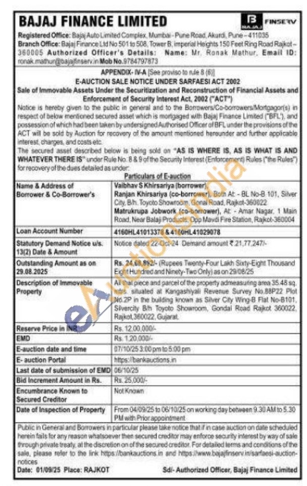 Contact Authorized Officer's Details: Name: Mr. Ronak Mathur Mob No.9784797873
