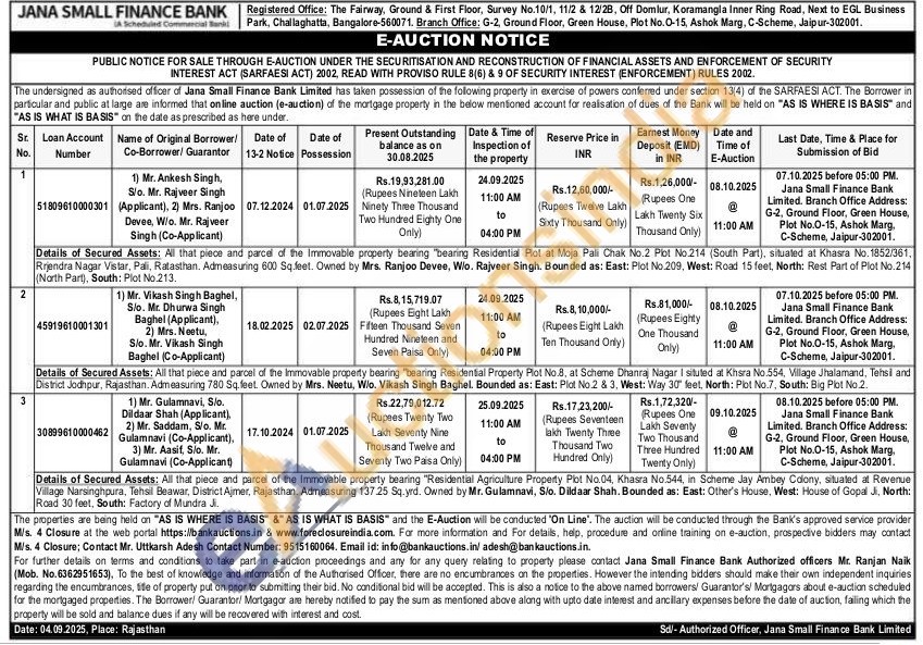 All that piece and parcel of the Immovable property bearing "Residential Agriculture Property Plot No.04, Khasra No.544, in Scheme Jay Ambey Colony, situated at Revenue Village Narsinghpura, Tehsil Beawar, District Ajmer, Rajasthan. Admeasuring 137.25 Sq.yrd. Owned by Mr. Gulamnavi, S/o. Dildaar Shah, Bounded as: East: Other's House, West: House of Gopal Ji, North: Road 30 feet, South: Factory of Mundra J