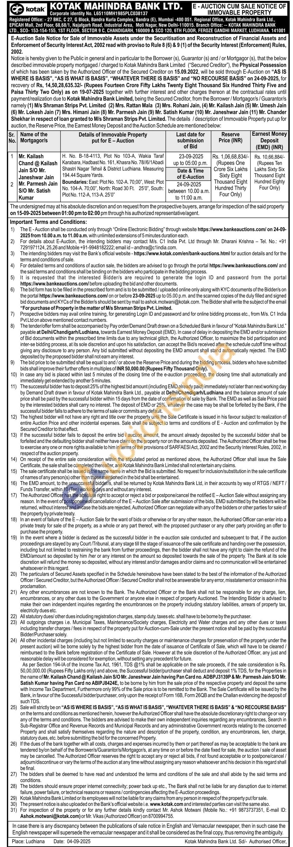 H.No B-18-4113,Plot no 103-A,Wakia Taraf karabara ,hadbast no.161 ,Khasara no 78/6/1 Abadi shastri Nagar,tehsil& Dist Ludhiana,Measuring 194.44 sq yrds