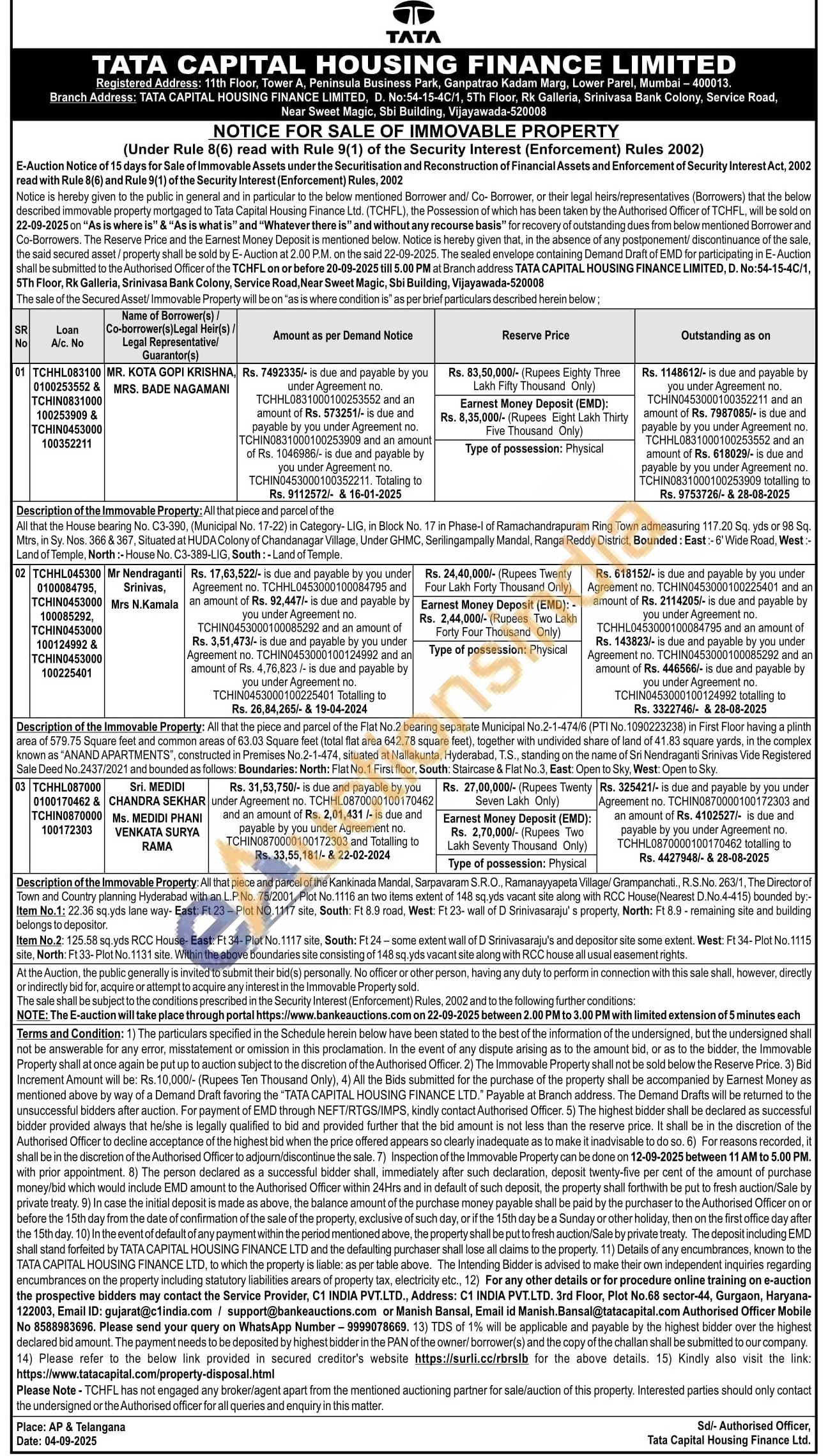 All that piece and parcel of the All that the House bearing No. C3-390, (Municipal No. 17-22) in Category-LIG, in Block No. 17 in Phase-I of Ramachandrapuram Ring Town admeasuring 117.20 Sq. yds or 98 Sq. Mtrs, in Sy. Nos. 366 & 367, Situated at HUDA Colony of Chandanagar Village, Under GHMC, Serilingampally Mandal, Ranga Reddy District, Bounded: East:-6' Wide Road, West:- Land of Temple, North: House No. C3-389-LIG, South:-Land of Temple