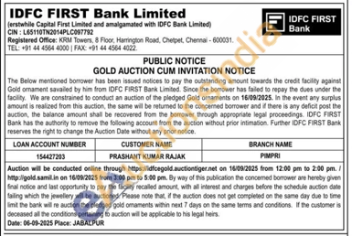 IDFC First Bank Ltd Gold Auctions Auction in Chennai