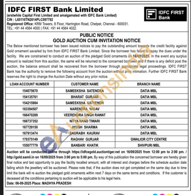 IDFC First Bank Ltd Gold Auctions Auction in Chennai