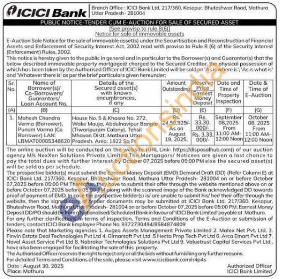 House No. 5 & Khasra No. 272. Wake Mauja, Abdulnavipur Bangar (Tiwaripuram Colony), Tehsil Mhavan Distt. Mathura Uttar Pradesh. Area: 1822 Sq Ft