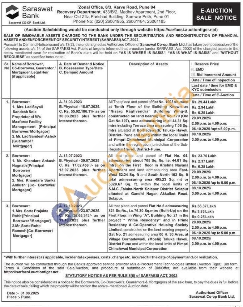 All that piece and parcel Flat No.6 admeasuring 821 Sq.fts., i.e.76.30 Sq.mtrs (Built-Up) on the First Floor, in Wing "A", Building No. 21 in the project Prime Residency" and in Prime Residency A Co-Operative Housing Society Limited, constructed on the land bearing property Gat No. 21 admeasuring area 00 H. 30 Ares, at Village Borhadewadi, (Moshi) Taluka Haveli, District Pune and within the local limits of Pimpri Chinchwad Municipal Corporation