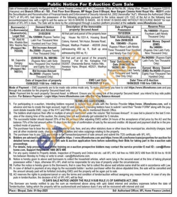 All that part and parcel of the property bear-ing House No.1031-A, Housing Board Colony, Karond, Teh Huzur, Berasia Road, Bhopal, Madhya Pradesh 462030 (Ama admeasuring 450 sq. Bull up are admeasuring 1900