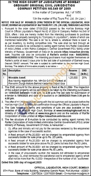 Movable Aseet Bus having registration No. MH-04-G-5157 Parked at Porvorim Durga Motors Behind Kadamba Depot Goa