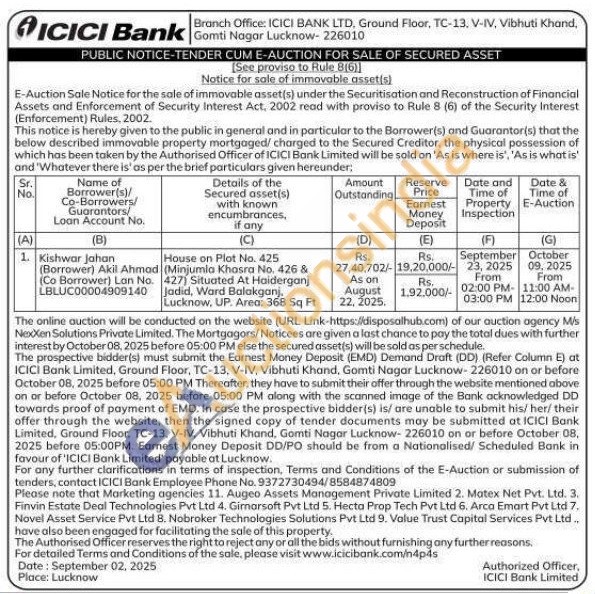 House on Plot No. 425 (Minjumla Khasra No. 426 & 427) Situated At Haiderganj Jadid, Ward Balakganj. Lucknow, UP. Area: 368 Sq Ft