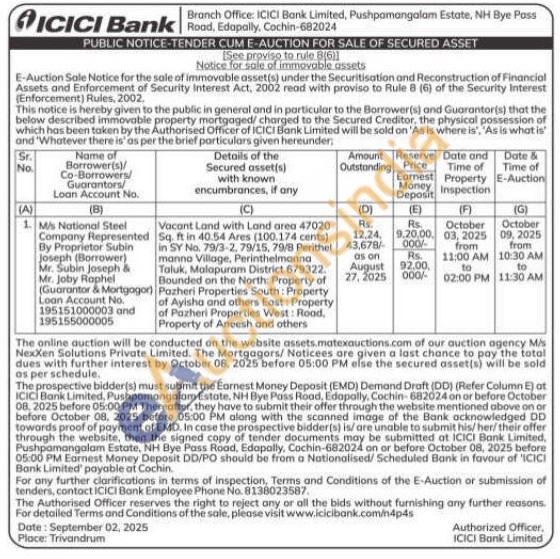 Vacant Land with Land area 47020 Sq. ft in 40.54 Ares (100.174 cents) in SY No. 79/3-2, 79/15, 79/8 Perithel manna Village, Perinthelmanna Taluk, Malappuram District 679322. Bounded on the North: Property of Pazheri Properties South: Property of Ayisha and others East: Property of Pazheri Properties West: Road, Property of Aneesh and others