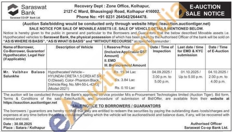 Hypothecated Vehicle-HYUNDAI CRETA 1.5 CRDI AT SX O (Diesel). Color-Phantom Black. [Vehicle Reg. No. MH-50-L-4243] (Model-2021)