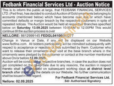 Fedbank Financial Services Ltd Gold Auctions Auction in Nellore